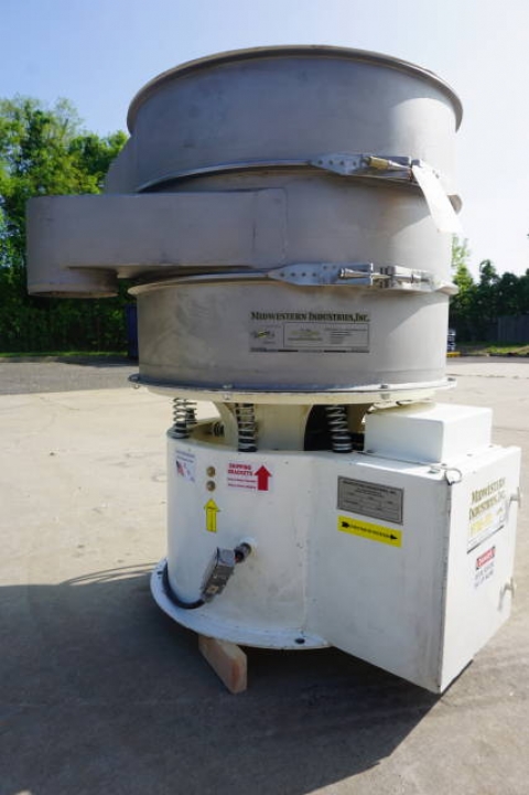 1-Used Midwestern Industries Approx. 36 In. Diameter Two Deck Stainless Steel Screener/Sifter, Model ME3658-8-8, Serial Number 0613-3614. Driven by 2HP, 3/60/230-460 Volt motor, this screener was last used in the food processing industry. (Stock #8268F)
