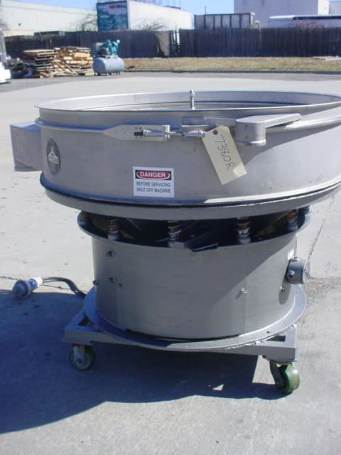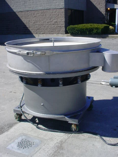 1-Used sweco 48″ diameter stainless steel scalper/screener, model us 48s, serial no. Us-48-98-9-44. On base with casters, scalper is driven by 2.5 hp, 3 phase, 60 cycle, 230 volt. Last used in food application.