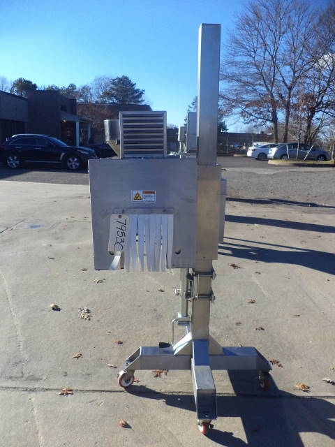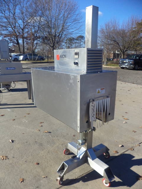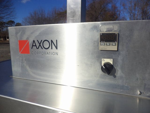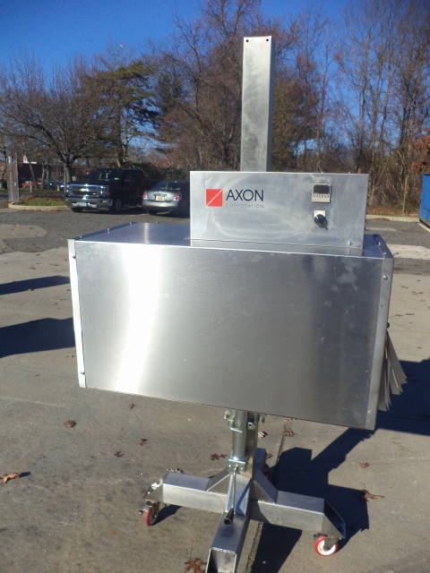 1-Used Axon Model EZ-36-SR9 Stainless Steel Shrink Tunnel, S/N E-0012011. Tunnel is approx 7 in. wide and mounted on adjustable stand. Electric specifications: 220 volt. (stock #7953C)