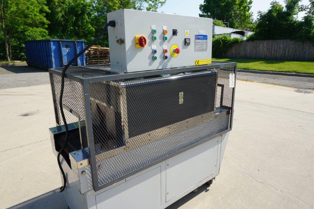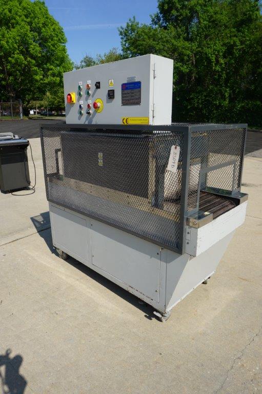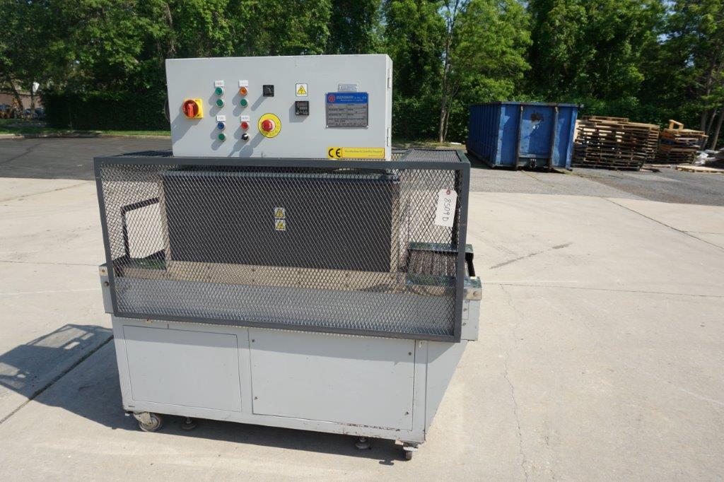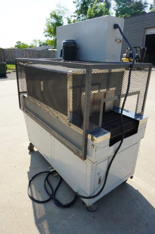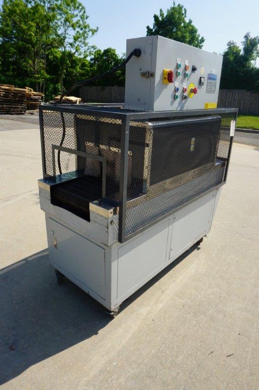 1-Used Benison & Co. Conveyorized Shrink Tunnel, Model DTP-400. On casters for portability, Tunnel has opening measuring approx. 15 In. Wide X 8 In. High. Last used in the cosmetics industry, tunnel has variable speed control. Electrical specifications 3/60/240 Volt. (Stock #8509D)