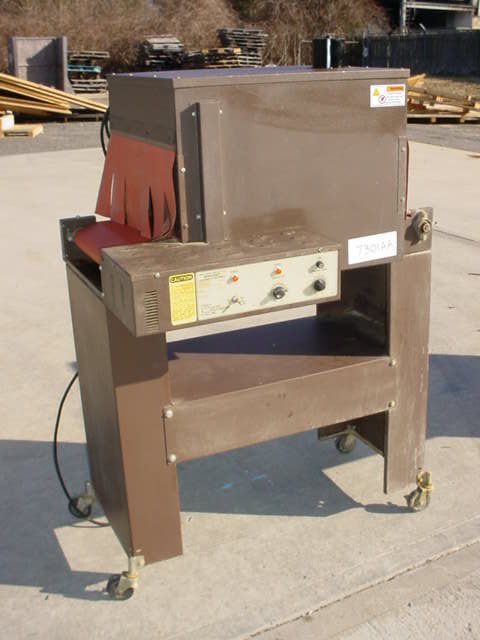 1-Used allied automation “sergeant” conveyorized shrink tunnel model 92416-bc, s/n 48338. Tunnel opening measures approx. 16″ wide x 9″ high. On casters for portability, motorized belt driven by single phase, 60 cycle, 220 volt motor.