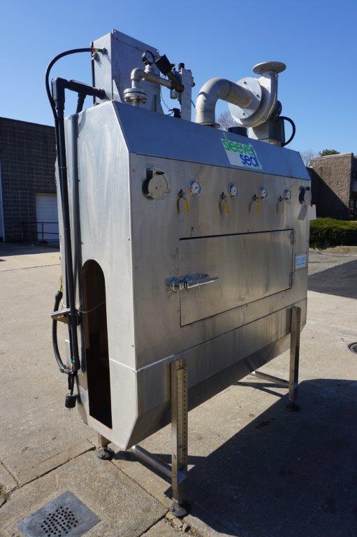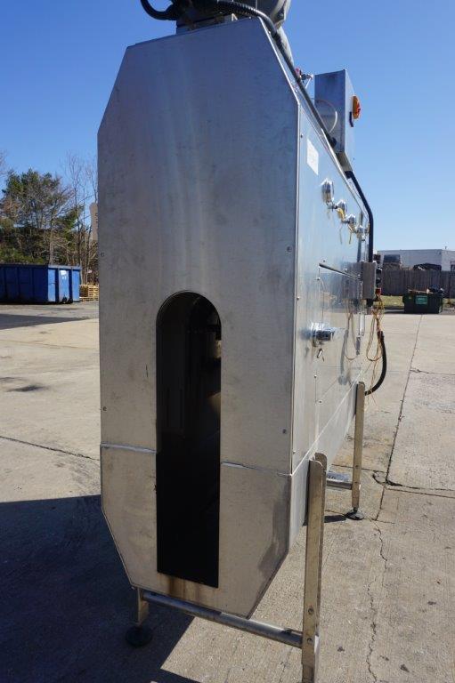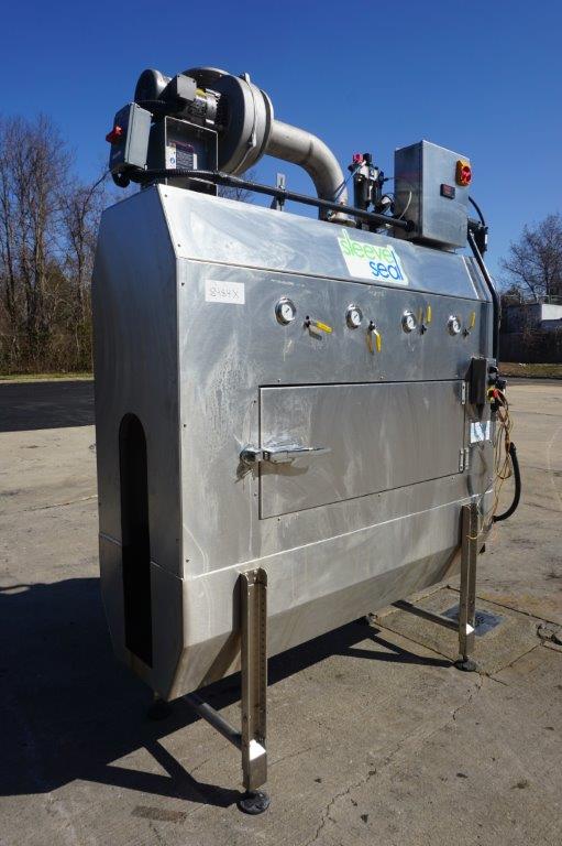 1-Used Sleeve Seal Model SST-250S Stainless Steel Shrink Tunnel. With approximately 8 In. wide tunnel opening, machine has top mounted blower and stainless steel starter box. With gauges for viewing of PSI. Last used in the food industry, tunnel can be supplied with pass through conveyor at an additional cost. (Stock #8488XX)