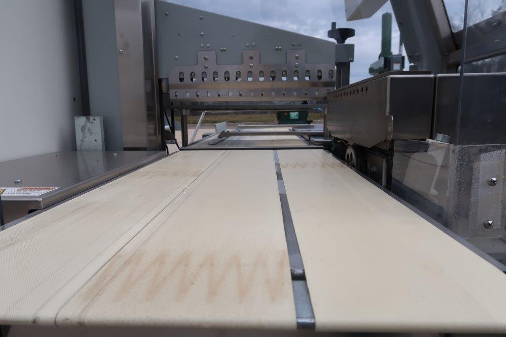 1-Used Texwrap Model 1810EH Side Seal Automatic Shrink Wrapper, Serial number T1810EH. On casters for portability, machine has single phase, 60 cycle, 208 Volt electric and 12 In. wide discharge belt. (Stock #8736B)