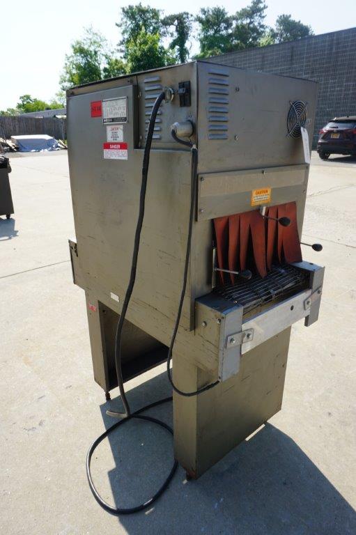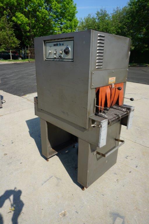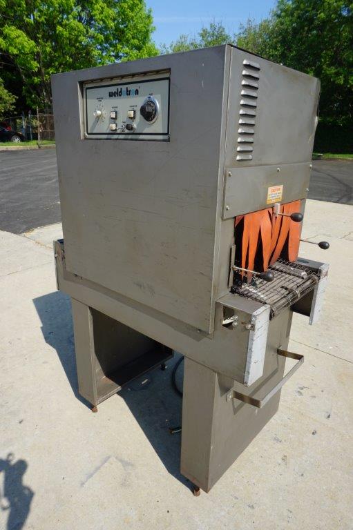 1-Used Weldotron Model 7030 Conveyorized Shrink Tunnel, S/N MH53070. Tunnel opening measures approx. 16 In. Wide X 9 In. High. Last used in the cosmetics industry, machine has single phase, 60 cycle, 230 Volt electrics. (Stock #8509C)