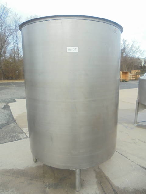 1-Used Groen 1,000 Gallon Stainless Steel Vertical Dished Bottom Tank, S/N 63006. Dimensions approx. 66 in. interior diameter X 85 in. deep. Tank has dished bottom with approx. 2 in. diameter center bottom outlet. On approx. 17 in. high legs. (Stock #8175F)