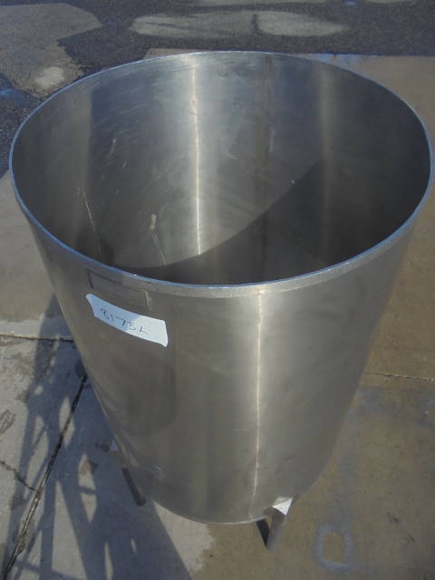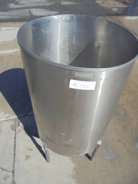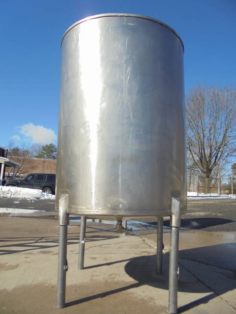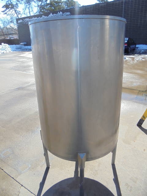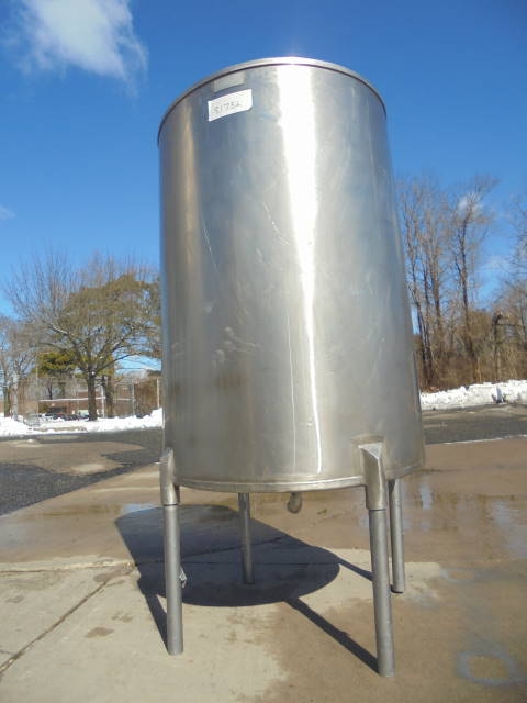 1-Used A.M. Williams 200 Gallon Stainless Steel Vertical Tank.  Dimensions approx. 38 in. diameter X 49 in. deep plus slight cone bottom.  With bottom outlet, Tank on approx. 18 in. high legs.  (Stock #8175L)