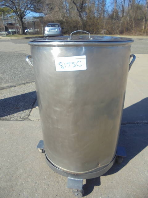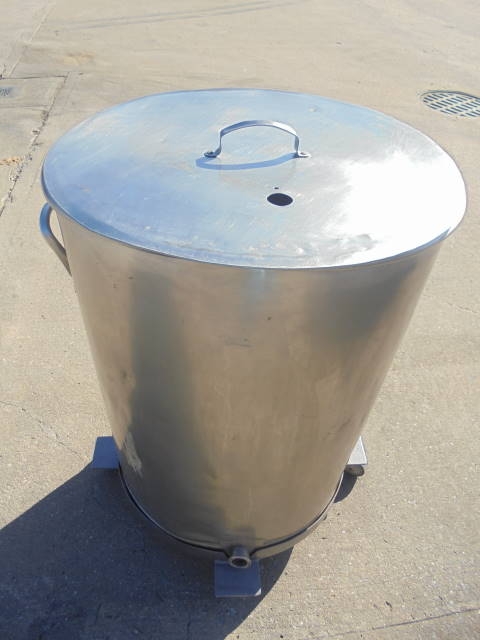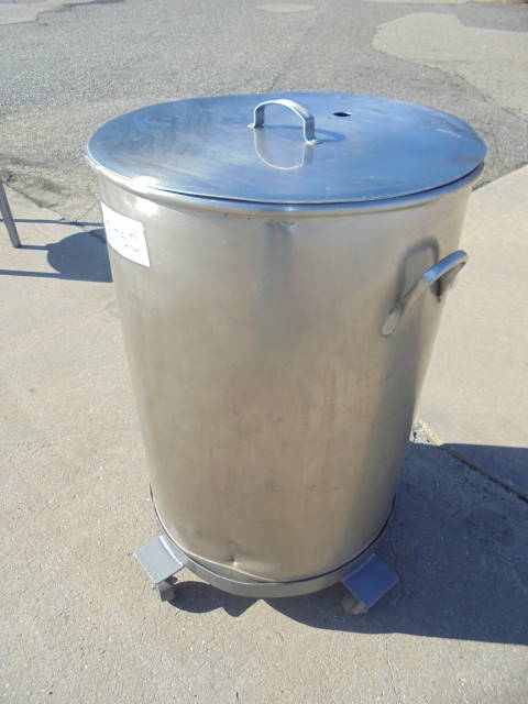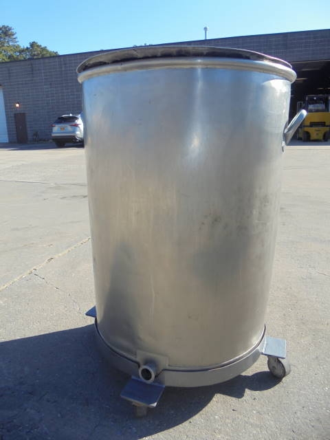 1-Used approx. 50 Gallon Stainless Steel Portable Stock Pot.  On dollies with casters, Portable Tank measures approx. 22 in. diameter X 32 in. deep.  Equipped with approx. 1 in. diameter side outlet.  (Stock #8175C)