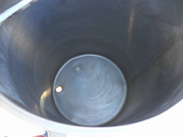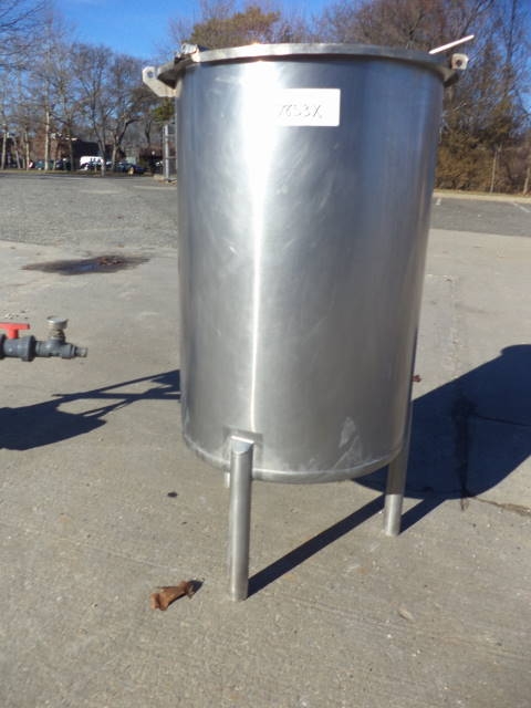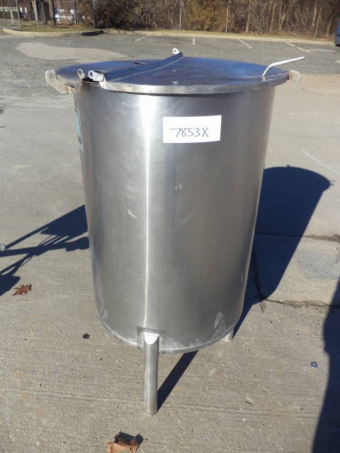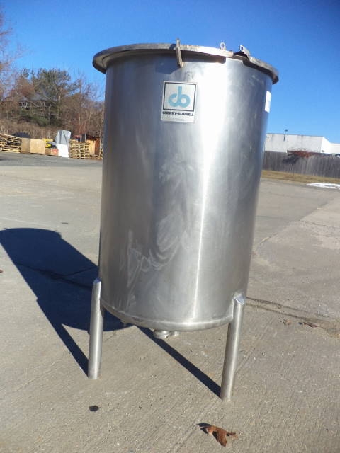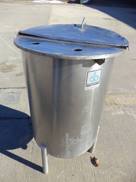 1-Used Cherry Burrell 60 Gallon Stainless Steel Vertical Tank. Dimensions approx. 24 in. diameter X 35 in. deep, Tank has slant bottom discharge with approx. 1-1/2 in. diameter outlet with stainless steel lid. Tank on approx. 14 in. high legs. (Stock #7853X)