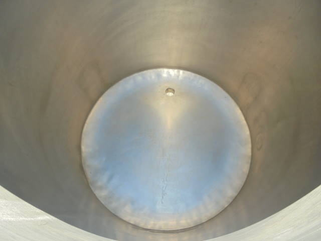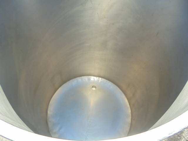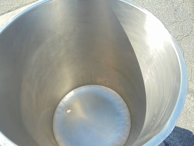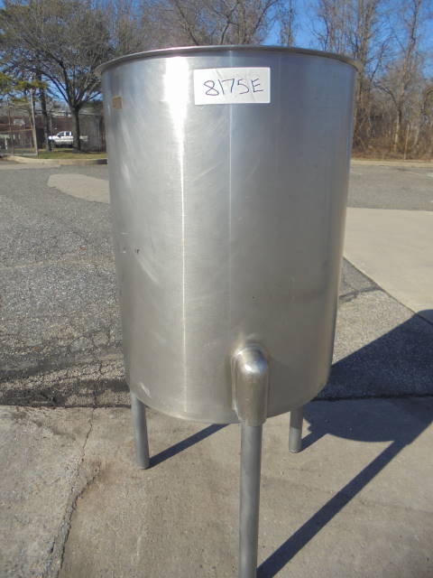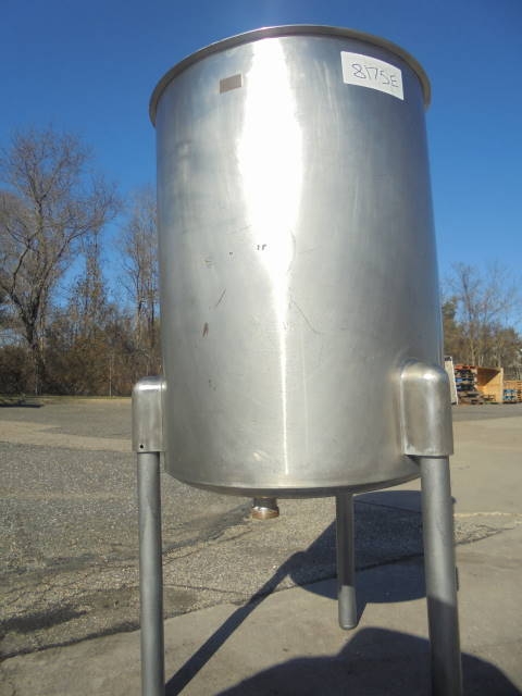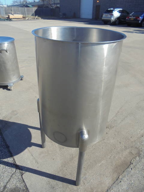 1-Used Sanitank approx. 60 Gallon Stainless Steel Vertical Tank, S/N 27867. Dimensions approx. 24 in. diameter X 32 in. deep. Tank has sloped bottom with approx. 1-1/2 in. diameter outlet. Mounted on approx. 22 in. high legs. (Stock #8175E)