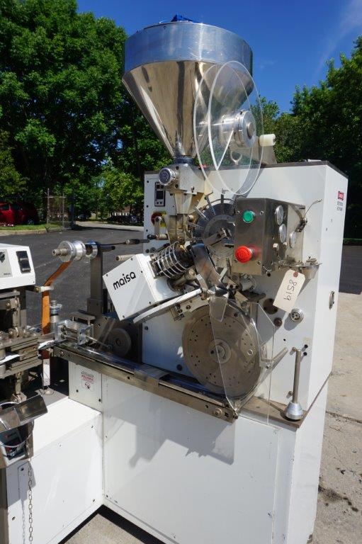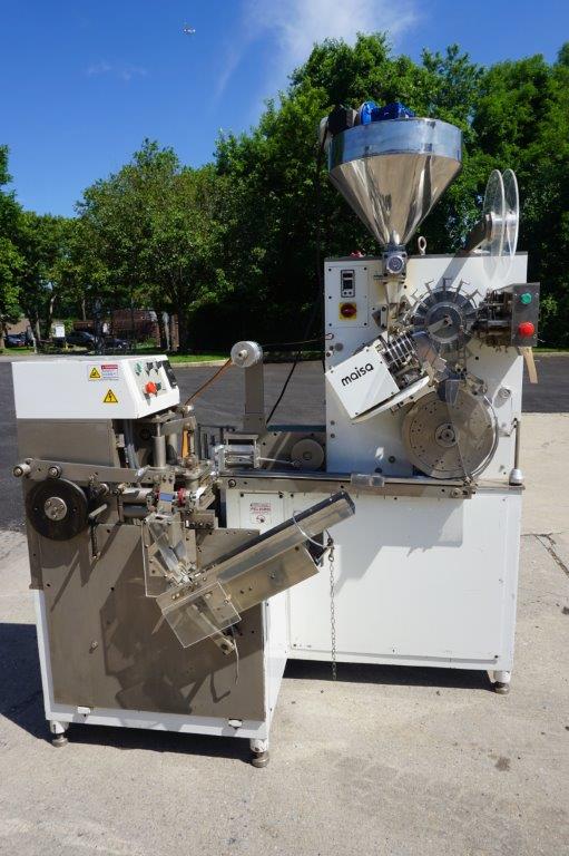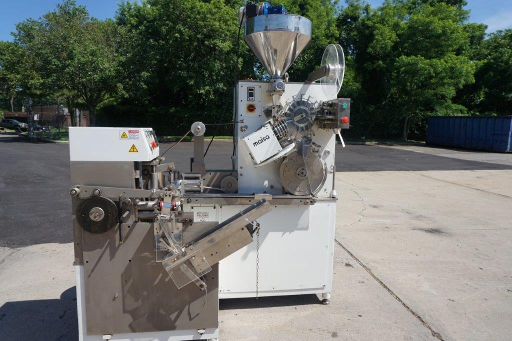 1-Used Maisa Model EC12Y/C Automatic Tea Bagging Machine, Serial Number 1705/24. Rated up to approximately 110 tea bags per minute, machine is equipped with string and tag attachment, as well as envelope feature. With top mounted agitated hopper. (Stock #8519)
