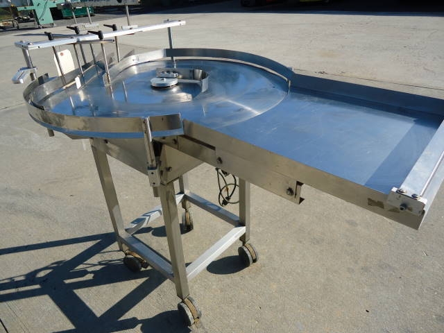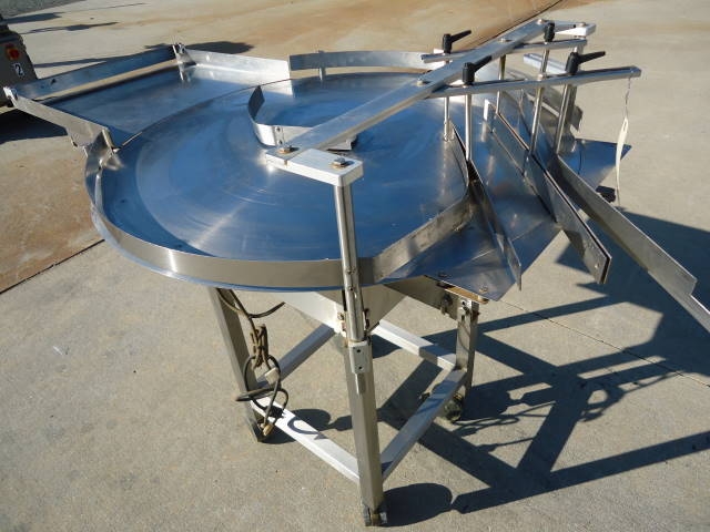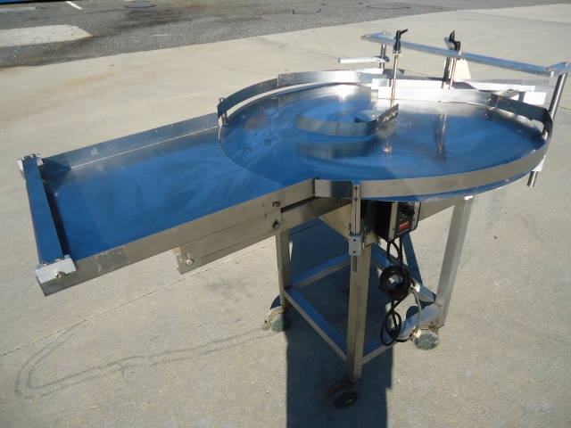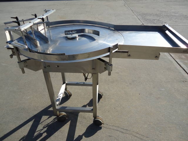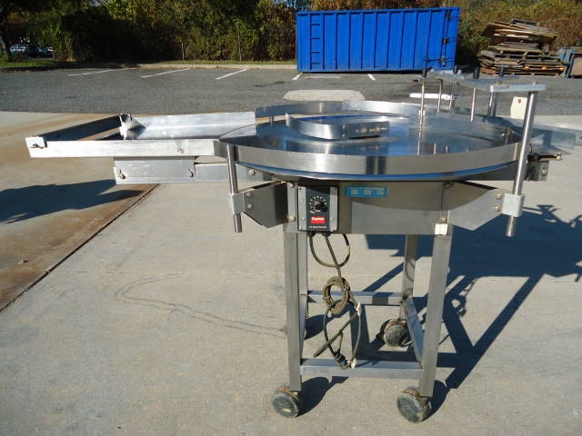 1-Used deitz/pharmafill aprox. 36 in. Diameter stainless steel rotary unscrambling/accumulating table. With stainless steel base with casters, table has stainless steel unscrambling shelf and is driven by single phase, 60 cycle, 115 volt electric motor with scr control for variable speed operation. (stock # 7528h)