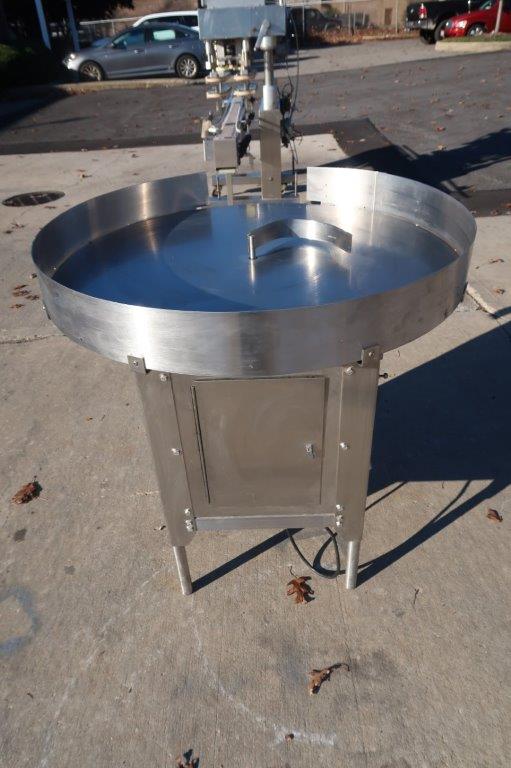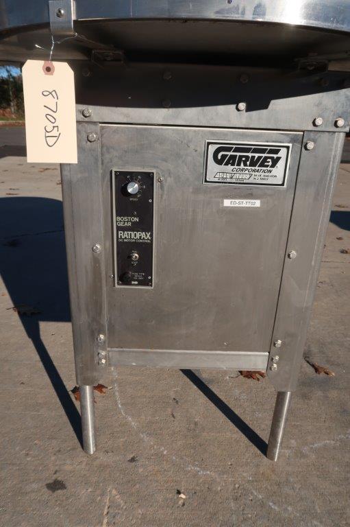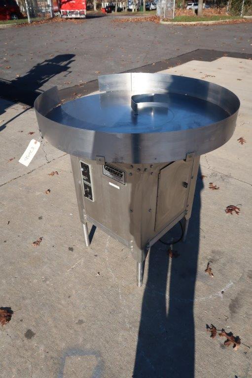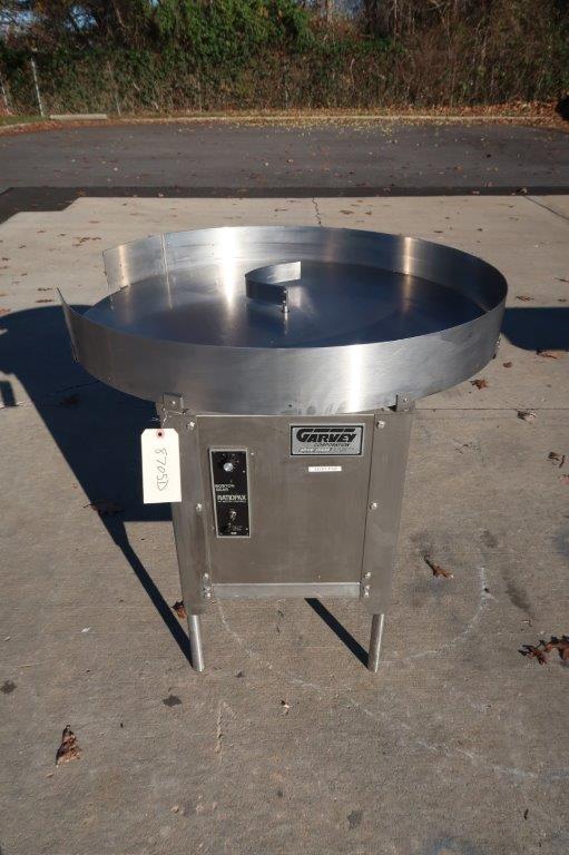 1 – Used Garvey 36 In. Dia. Stainless Steel Rotary Unscrambling/Accumulating table, S/N 17958. Driven by a fractional HP motor, the table has variable speed control and was last used in a pharmaceutical facility (Stock # 8705D)
