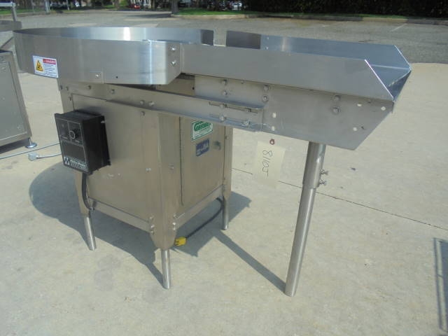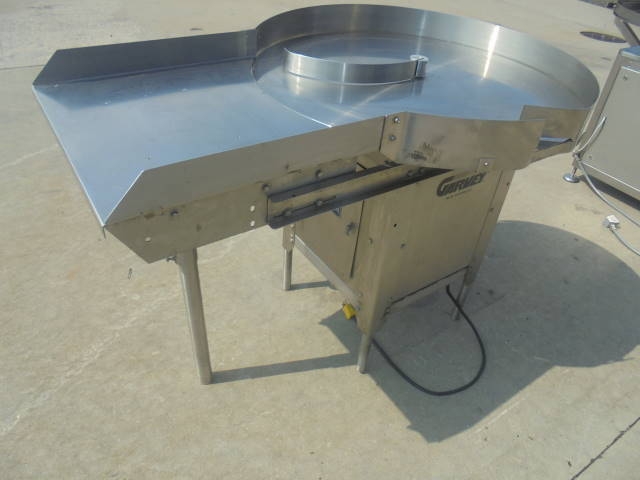 1-Used Garvey Corporation approx. 36 in. diameter all Stainless Steel Rotary Unscrambling/Accumulating Table Model 1546, S/N 13292. With Unscrambling Shelf, Table has single phase electric motor with “Motor Master” variable speed control. (Stock #8110J)