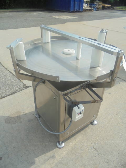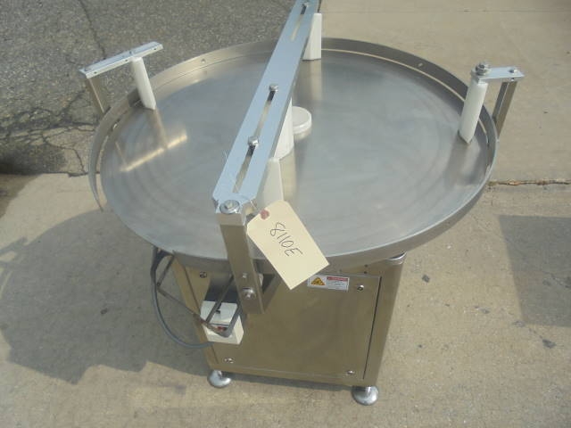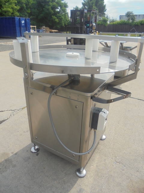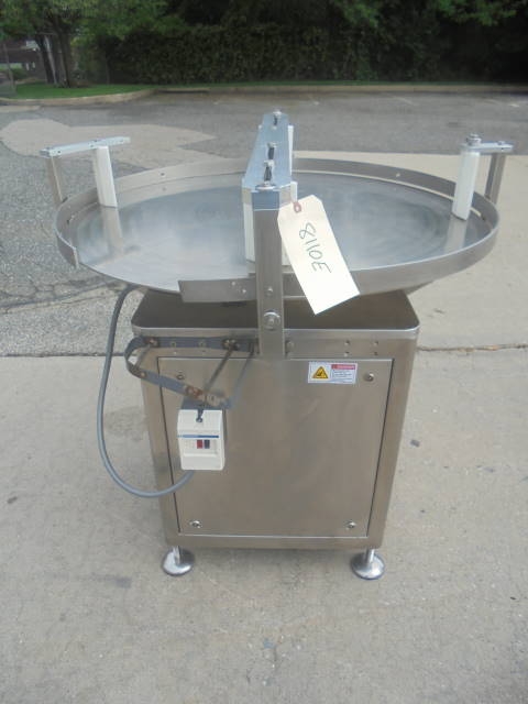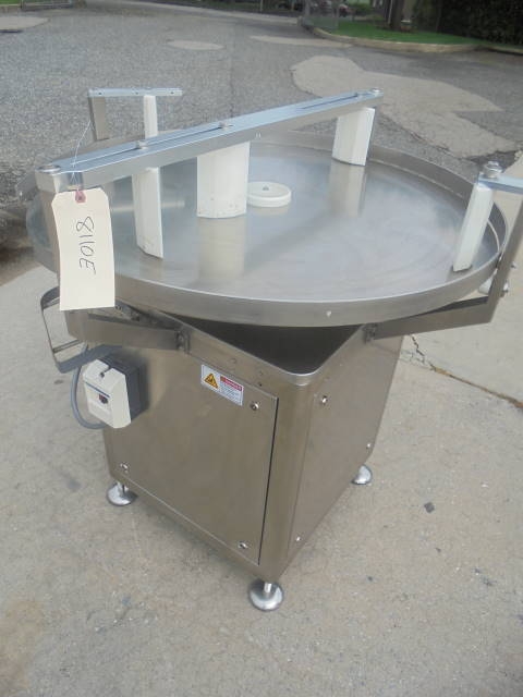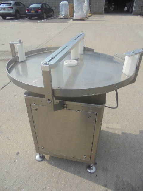 1-Used approx. 39 in. diameter all Stainless Steel Rotary Unscrambling/Accumulating Table. With stainless steel cabinetry, Table driven by fractional horsepower 3/50-60/230-460 volt variable speed motor. (Stock #8110E)
