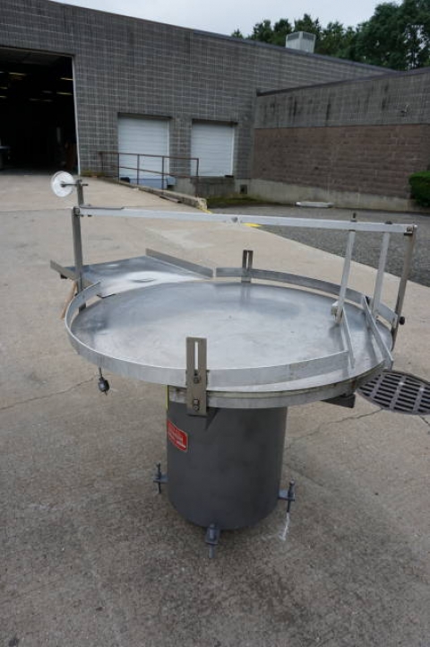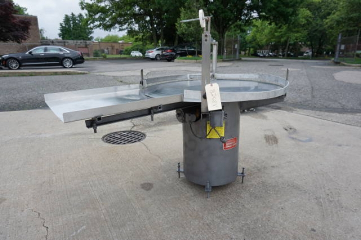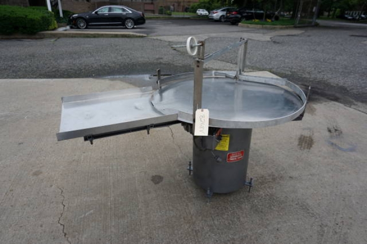 1-Used Kaps All 48 In. Diameter Rotary Unscrambling/Accumulating table, Model FS-U-48, Serial Number 1594.  Equipped with stainless steel top disc, and stainless unscrambling shelf, table has single phase electric motor, and variable speed control. Last used in the food industry. (Stock # 8268V)