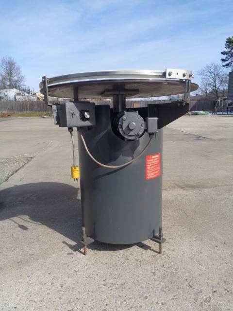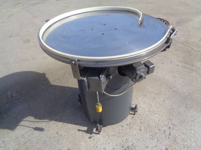 1-Used Kaps-All 36 In. Diameter Rotary Unscrambling/Accumulating Table Model FS-A, S/N 1029.  Equipped with Stainless Steel Top Disc Table.  Has single phase electrics with variable speed control.  (Stock #8077C)