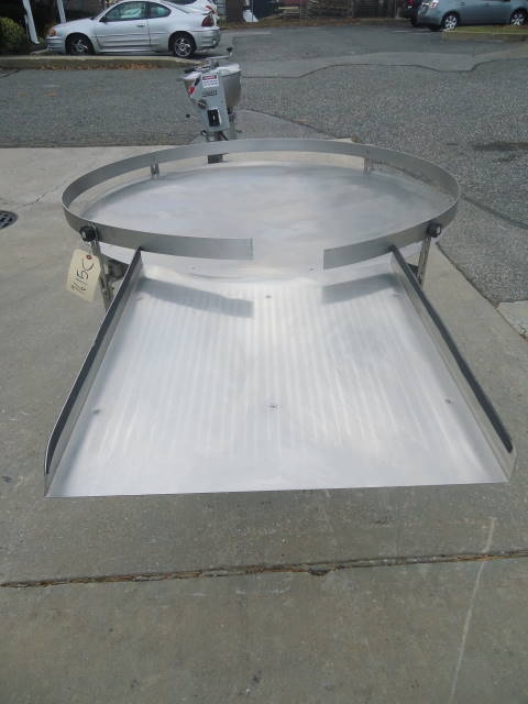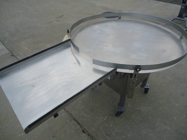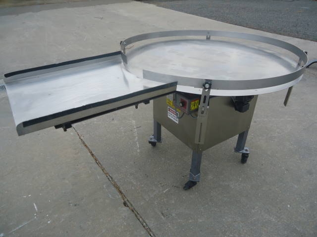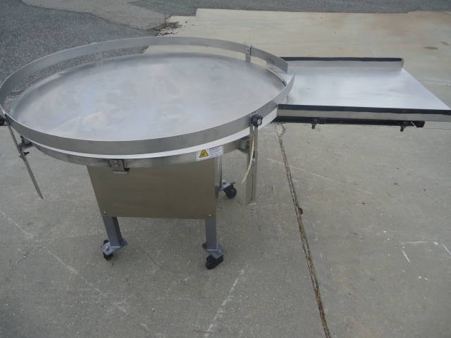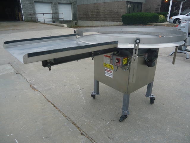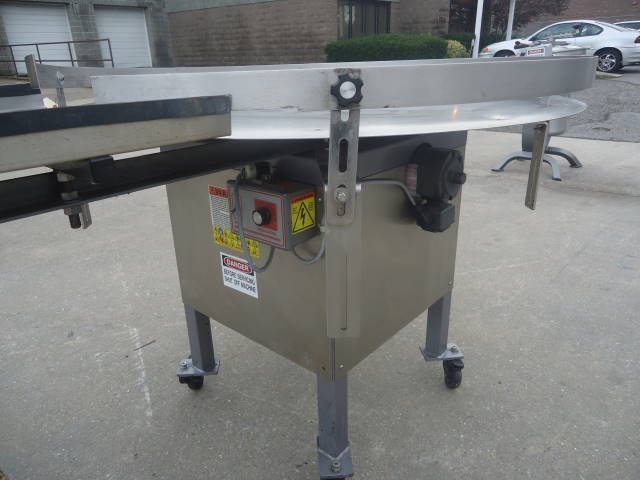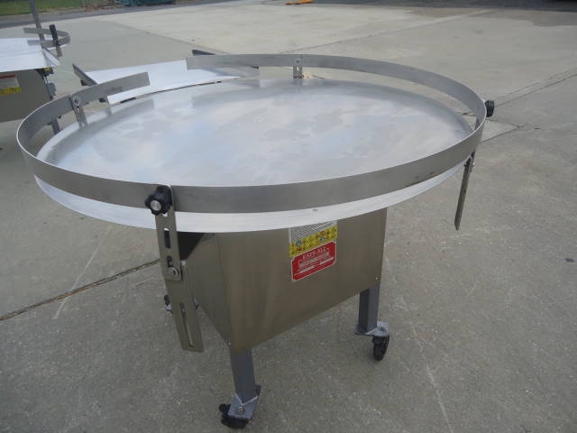 1-Used kaps-all model fs-a-48 rotary accumulating table, s/n 6563. This 48 in. Diameter accumulating table has variable speed controls and single phase, 60 cycle electrics. on casters for portability. With stainless steel shelf. (stock # 7615c)