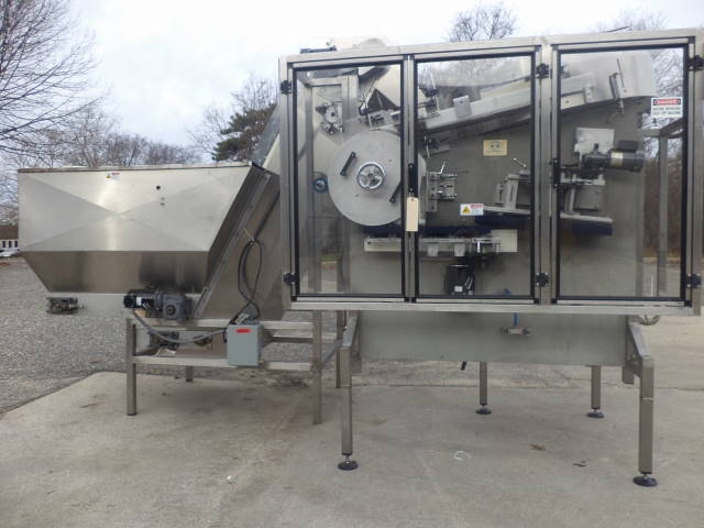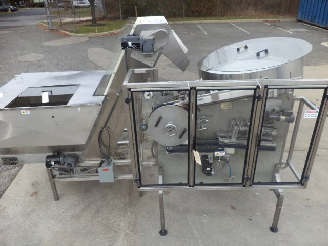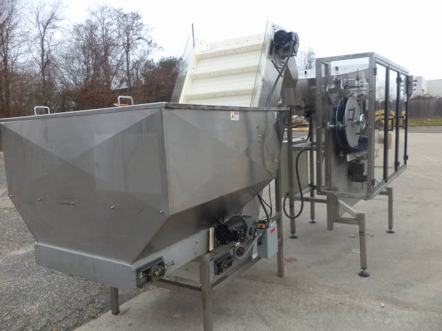 1-Used New England Machinery Model NEHA-48 Plastic Bottle Unscrambling System, S/N 2390. Supplied with New England Machinery Model H-E-60 Inclined Hopper Elevator S/N 1-8558. Unscrambler has approx. 48 in. diameter Bowl and came out of pharmaceutical facility. (Stock #7953NN)